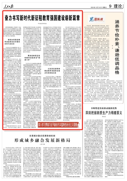 教育是強國建設、民族復興之基。習近平總書記在全國教育大會上的重要講話,對新時代新征程加快建設教育強國作出系統部署,向全黨全社會發出建設教育強國的動員令。教育系統將堅定不移抓好落實,勇擔興教強教新使命,不斷開創工作新局面。