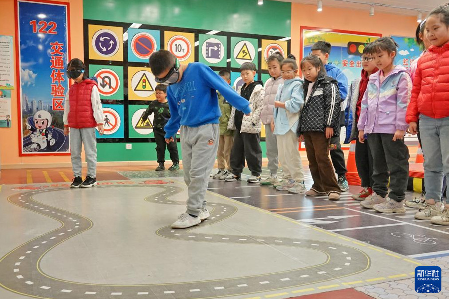 3月30日,小學生在山東省煙臺市青少年宮參加安全教育互動游戲。(新華社發 唐克/攝)