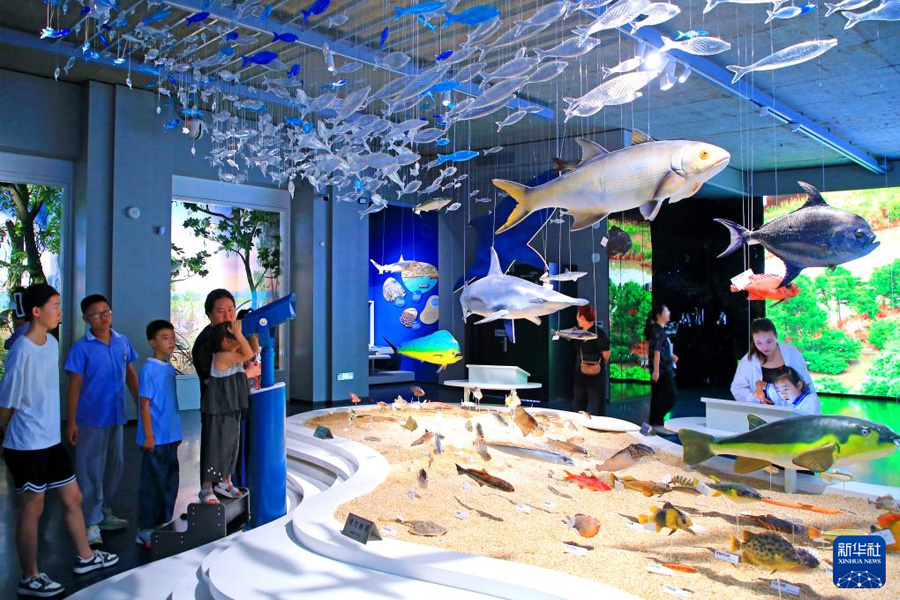 7月6日,家長帶著孩子在位于浙江省玉環市的玉環博物館參觀游覽。(新華社發 段俊利/攝)