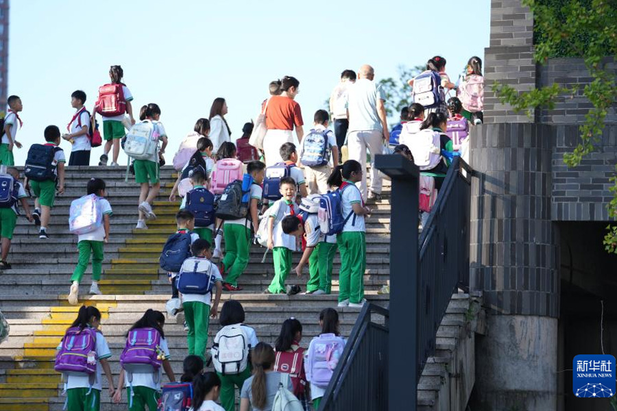 9月1日,貴陽市實驗小學未來方舟分校的學生走進校園。當日,全國多地中小學開學,師生迎接秋季新學期。(新華社記者 陶亮/攝)