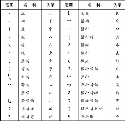 附錄1 漢字筆畫名稱